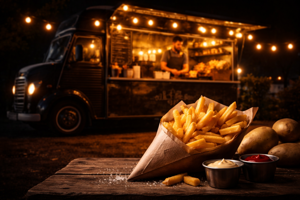 Samen zetten ze een friet foodtruck neer waar kwaliteit, gezelligheid en een flinke dosis plezier samenkomen.